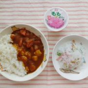 カレーライス 三色サラダ ゼリー 小魚 ※三色サラダのもやしが春雨へ変更になりました
