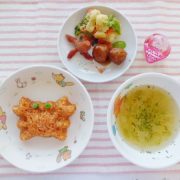 ☆お誕生日会☆ チキンライス ウインナー ミートボール ゆで野菜サラダ コンソメスープ チュルルン
