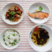 えんどう豆ご飯 焼き魚(鮭) 筑前煮 若竹汁