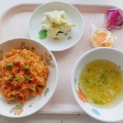 ☆自由保育☆ チキンライス ポテトサラダ コンソメスープ 小魚