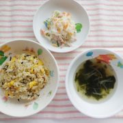 ☆自由保育☆ ひじきとじゃこのチャーハン 春雨サラダ ワカメスープ