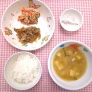ごはん 赤魚の煮つけ にんじんしりしり 豚汁 果物(パイン缶)