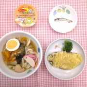 月見うどん さつまいもの天ぷら 付₎ブロッコリー ゼリー 小魚
