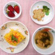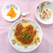 ミートスパゲティ マセドアンサラダ 果物(みかん缶) チーズ