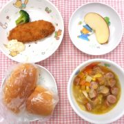 ロールパン 白身魚フライ 付)ブロッコリー 野菜たっぷりポトフ 果物(りんご)