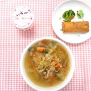 お野菜たっぷりラーメン 春巻付(ブロッコリー) ヨーグルト 小魚