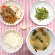 ごはん すきやき風煮 ブロッコリーのおかかマヨサラダ みそ汁チーズ