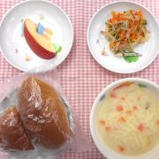 黒糖ロール クリームシチュー 春雨サラダ 果物(リンゴ) 小魚