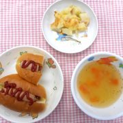 ホットドッグ ジャーマンポテト コンソメスープ 小魚