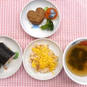 幼児:サラダ巻き寿司 乳児:ちらし寿司 ハンバーグ 付(ブロッコリー) すまし汁 ゼリー