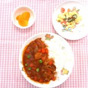 ☆自由保育☆ ハヤシライス マカロニサラダ 果物(みかん缶) 小魚