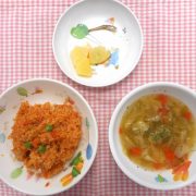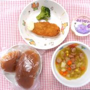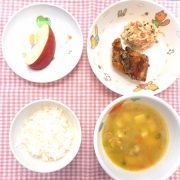 ☆自由保育☆ チキンライス コンソメスープ 果物(パイン缶) 小魚