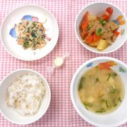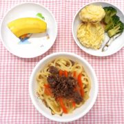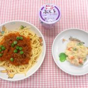 ミートスパゲティ マセドアンサラダ ヨーグルト 小魚