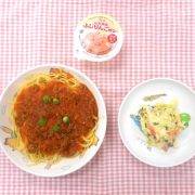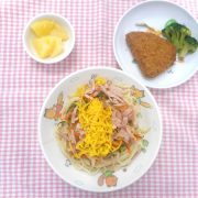 ミートスパゲティ コールスローサラダ ゼリー 小魚