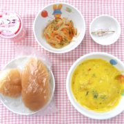 ロールパン かぼちゃシチュー 春雨サラダ ヨーグルト 小魚