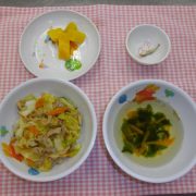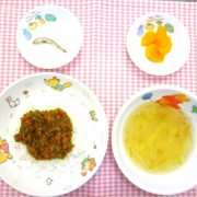 ☆自由保育☆ ドライカレー 春雨スープ 果物(ミカン缶) 小魚