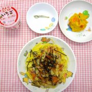 きのこスパゲティー かぼちゃサラダ ヨーグルト 小魚