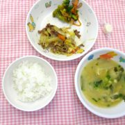 ごはん すきやき風煮 ブロッコリーのおかかあえ みそ汁 チーズ