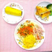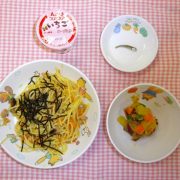 ツナの和風スパゲティー さつまいもサラダ ヨーグルト 小魚