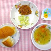ロールパン 煮込みハンバーグ 粉ふき芋 コンソメスープ ゼリー