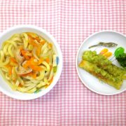 かやくうどん ちくわの磯辺揚げ 付(ブロッコリー) 果物(バナナ) 小魚