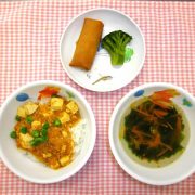 マーボー丼 春巻 付(ブロッコリー) ワカメスープ 小魚