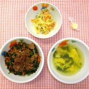 ビビンバ風丼 春雨サラダ 卵スープ チーズ