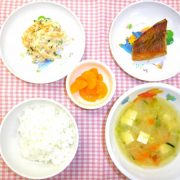 ごはん 赤魚の煮つけ 切干大根のサラダ 具だくさん味噌汁 果物(ミカン缶)