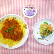 ミートスパゲティー ゆで野菜サラダ ゼリー 小魚