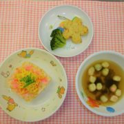 ちらし寿司 花形豆腐ハンバーグ 付(ブロッコリー) すまし汁 小魚