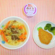 肉うどん かぼちゃひき肉フライ 付(ブロッコリー) ヨーグルト