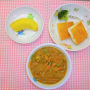 カレーうどん はんぺんのチーズフライ 付(ブロッコリー) 果物(バナナ) 小魚