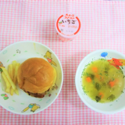 手作りハンバーガー フライドポテト カレースープ ヨーグルト