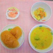 ロールパン かぼちゃシチュー マカロニサラダ ゼリー