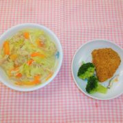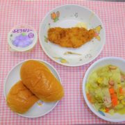 ロールパン 白身魚フライ 野菜たっぷりポトフ ゼリー 小魚