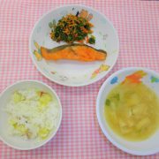 さつまいもごはん 鮭の塩焼き ほうれん草のゴマ和え みそ汁