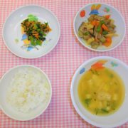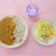 根菜和風カレーライス(雑穀) マカロニサラダ ヨーグルト 小魚
