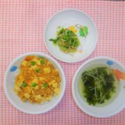 マーボー丼 春雨とレタスの和風ツナサラダ ワカメスープ 小魚