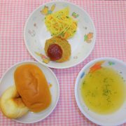 ロールパン カムカムハンバーグ スパサラ コンソメスープ