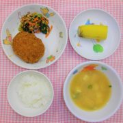 ごはん コロッケ 小松菜の納豆あえ みそ汁 果物(バナナ)