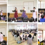 おでかけ音楽会が開催されました。 Ciojo,s(ちょーじょーず)の皆さんが子ども達が大好きな歌をたくさん歌ってくださいました。 むすんでひらいて、幸せなら手を····