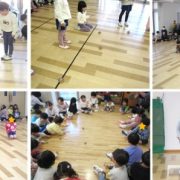 こま回し大会を行いました! 3,4,5歳児は遊戯ホールに集まり、クラスごとに回し、各年次で1,2,3位を競いました。 「コマコマまわれくるくるまわれ〇〇さんのコ····