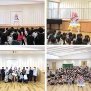 プリキュアのキュアアンサーが粉河保育園に来てくれました! 舞台扉から出てきたキュアアンサーを見た子どもたちはテンションもマックス! 保育園のおともだちのために、····