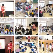 5歳児すみれぐみを対象に交通安全教室が開催されました。 知らない人について行かない、自転車に乗る時はヘルメットを被る、信号機の見方、横断歩道の渡り方について大切····