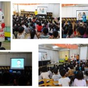 おなか元気教室(ヤクルト) おなかの中には”よいきん””わるいきん”がいることや 元気なおなかを作るおはなしのビデオなどをみせてもらいました。ヤクルトくんと一····