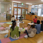 お腹の健康のお話をしていただきました。 子どもたちはヤクルトマンにびっくり! お母さんたちは、ハンドトリートメントでリフレッシュ! 親子の交流も楽しみながら、過····