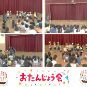 今日は8月生まれのお誕生会でした。誕生児は8名で、保育者からの質問にしっかり答えることが出来た後で、みんなにお歌を歌ってもらって、嬉しそうにしている子ども達でし····