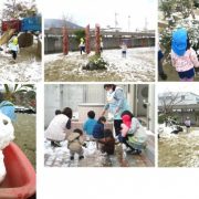 昨日からの雪が積もり、子ども達は大喜びで雪遊びを楽しみました! 雪だるまを作ったり、雪合戦をしたり・・「さむい~」「てがつめたい!」と言いながらも、夢中になって····
