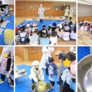 味噌作りをしました! 大豆と米こうじと塩を混ぜて、味噌玉を作り、容器に投げ入れて仕込みました。 子ども達は「えいっ!」と言いながら、力いっぱい投げ、手の感触やに····